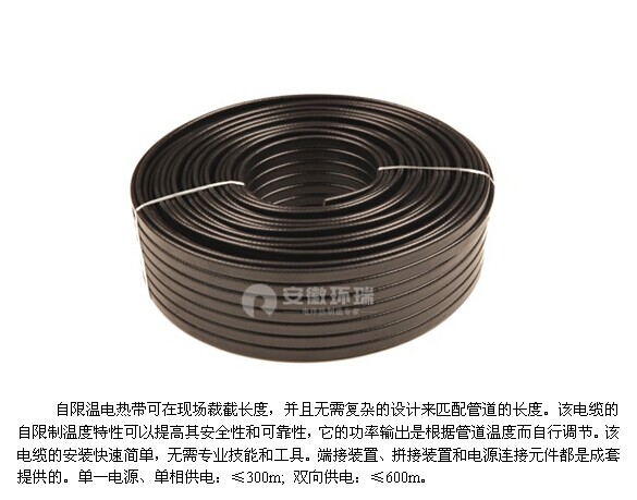 除此解決物料堵塞的問題,例如泄放后溫度下粘度上升或者結塊了可以考慮使用電伴熱保溫的方式,它可螺旋纏繞在安全閥和出口一定距離的管線上,對內部物料進行伴熱保溫。目前推薦自限溫電熱帶,它可以各種方式纏繞于安全閥外部,即使重疊、交叉也不會過熱或燃燒。簡要說明如下: